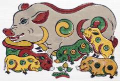 Giờ hãy thử đi tìm cha của những chú lợn này xem. Đầu tiên là vào google sau đó gõ từ khóa “Đàn lợn tranh Đông Hồ”, bạn sẽ tìm được 2 bức tranh giống nhau nhưng lại ngược nhau. Một bức lợn mẹ quay mặt sang bên phải còn một bức lợn mẹ quay mặt sang bên trái. Nghĩa là một bức là Dương bản còn bức kia là Âm bản. Bức lợn mẹ quay mặt về bên phải (bên Dương) nghĩa là duy Dương, là bức Dương bản.